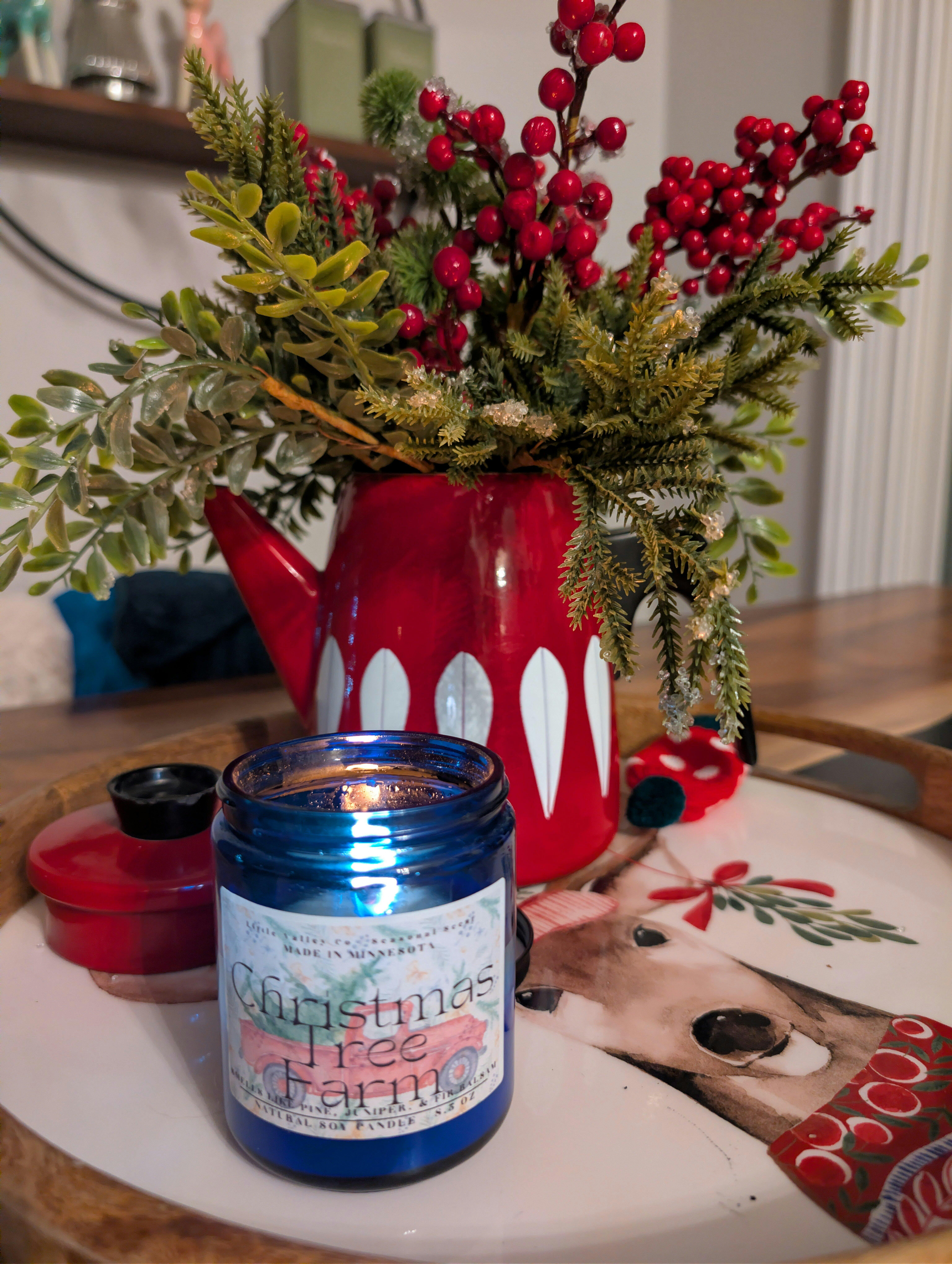 The Christmas Tree Farm candle is a dupe on the very popular, classic wintertime fragrance Fraser Fir. Scented with pine, fir balsam, and moss, the Christmas Tree Farm candle is the essential candle to have warming up your home during the holiday season!
