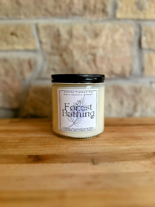 Forest bathing: taking in the forest atmosphere. The practice of immersing yourself in the sights, sounds, smells, and feels of the forest to allow your mind and body to disconnect and reset. The Forest Bathing candle brings the smell of the forest to you. Earthy moss, eucalyptus, pine bring together scents of wet leaves and crisp air.