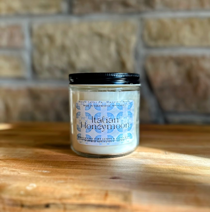 Our most popular candle! The Italian Honeymoon candle is a fresh scent reminiscent of a summer honeymoon spent in Italy: tart, fresh lemon and clean, herbal basil.