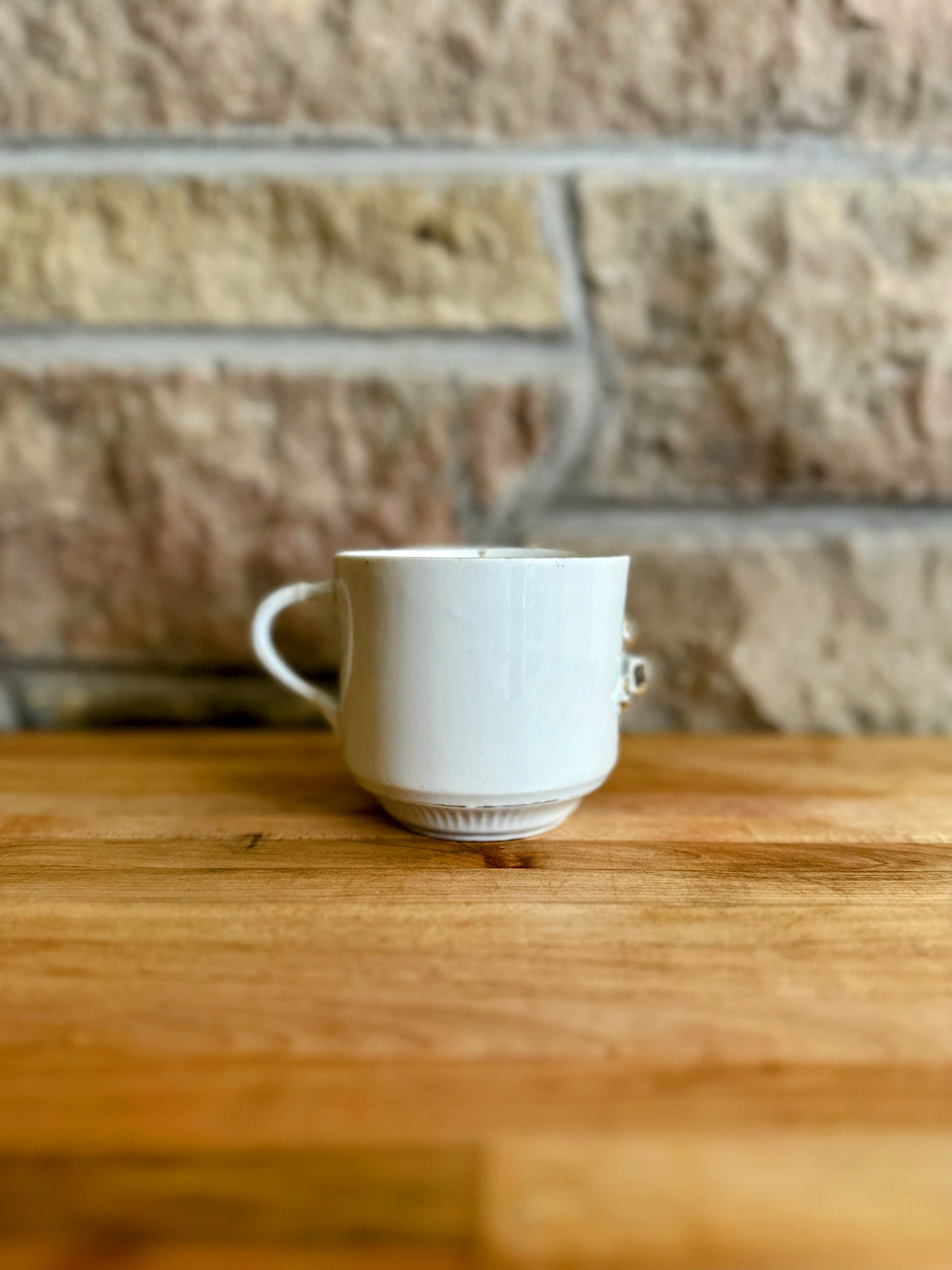 A beautifully unique mug with a hand-painted ceramic floral sculpture. This candle is scented with pumpkin chai fragrance.
